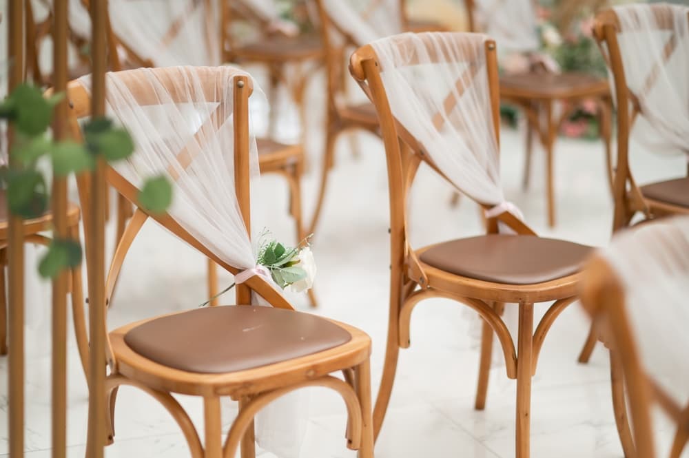- Wooden wedding chairs – Perfect for rustic outdoor themes